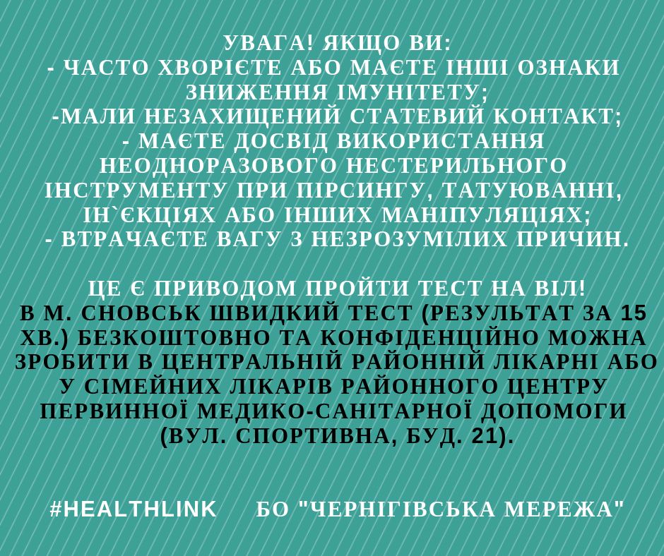УВАГА! В Центрі є можливість пройти тест на ВІЛ